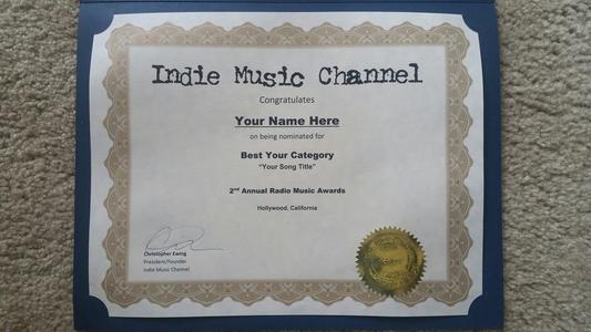Names of winners will be listed online on the Indie Music Channel and Radio Music Awards websites.